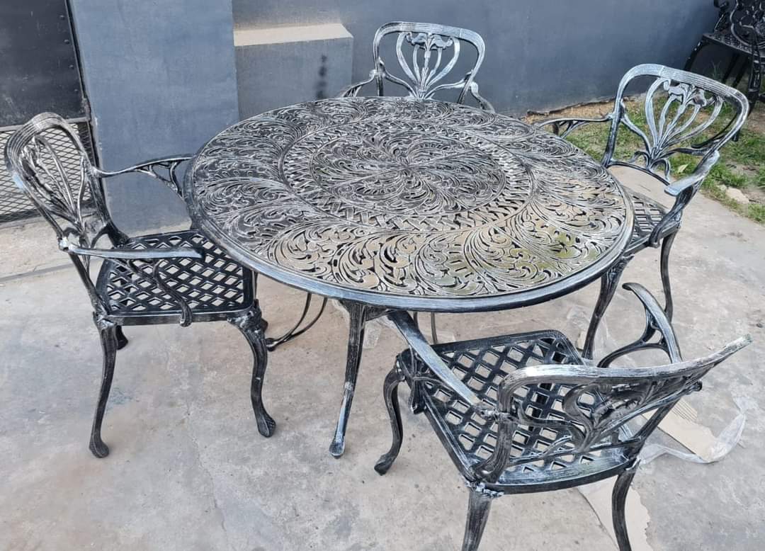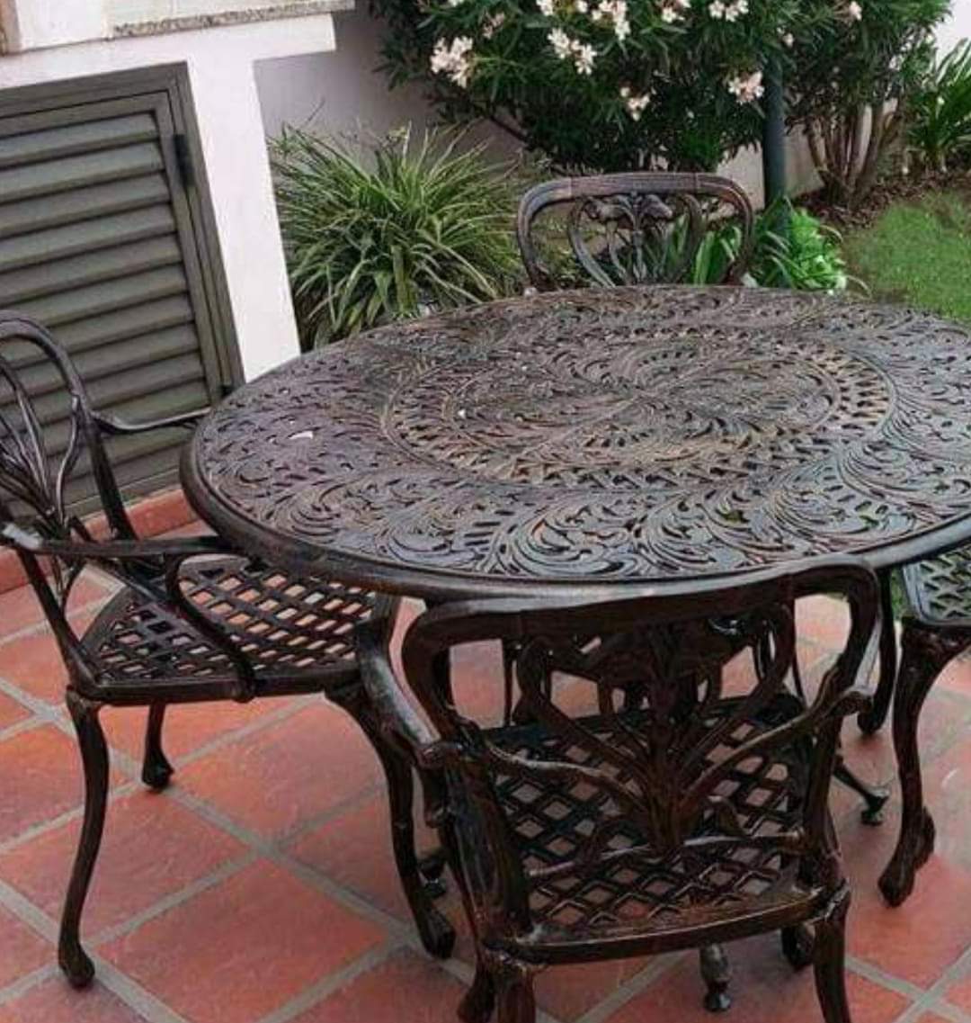 Juego de jardín en Fundición De Aluminio – modelo BARCELONA x 4 – Mesa 100 CM de diametro + 4 sillones