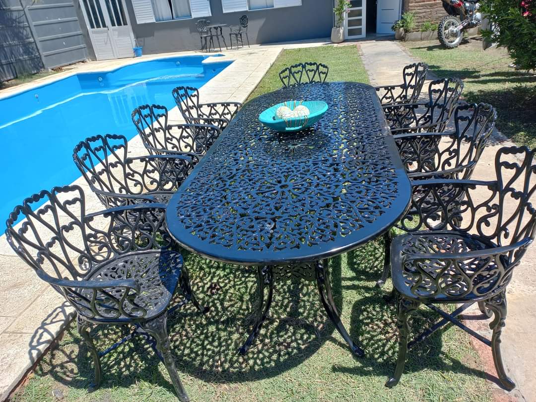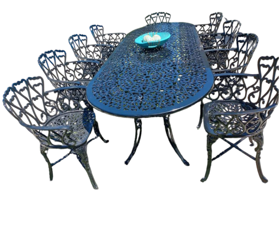 Juego De Jardín En Fundición De Aluminio – Modelo Chato X 10 (Mesa 250 x 100 CM + 10 sillones)