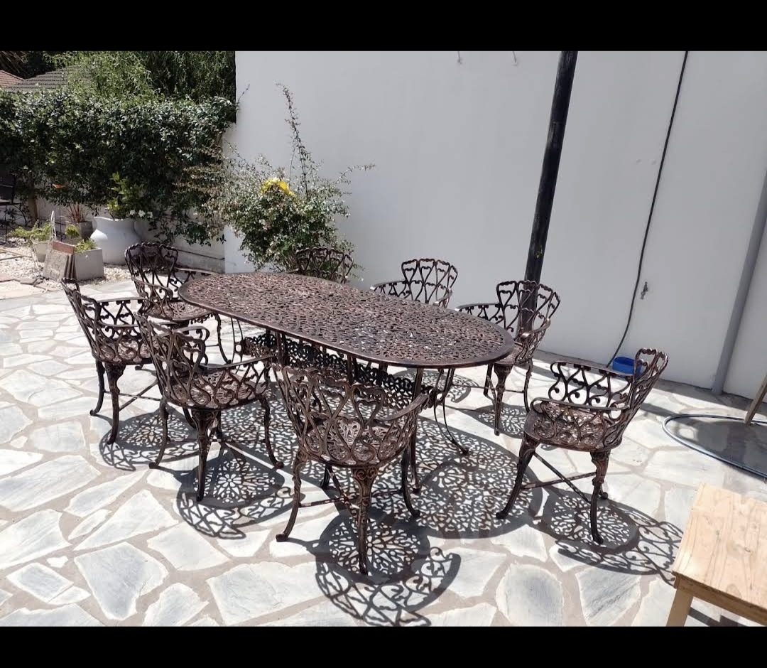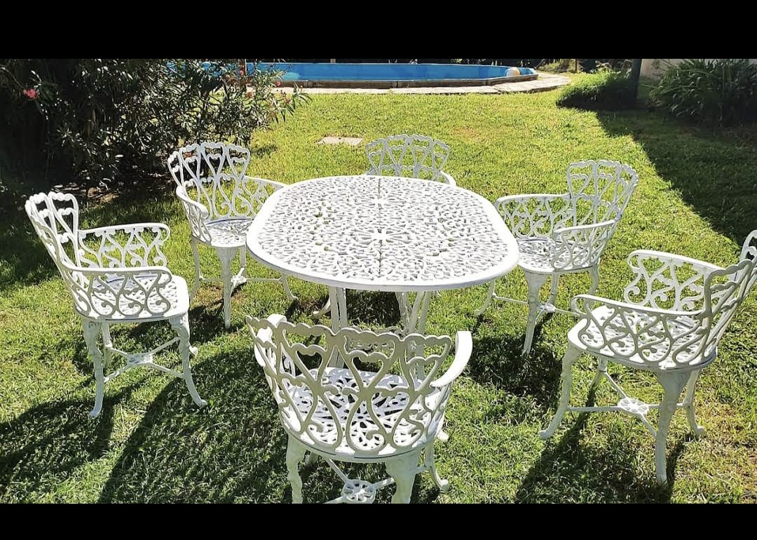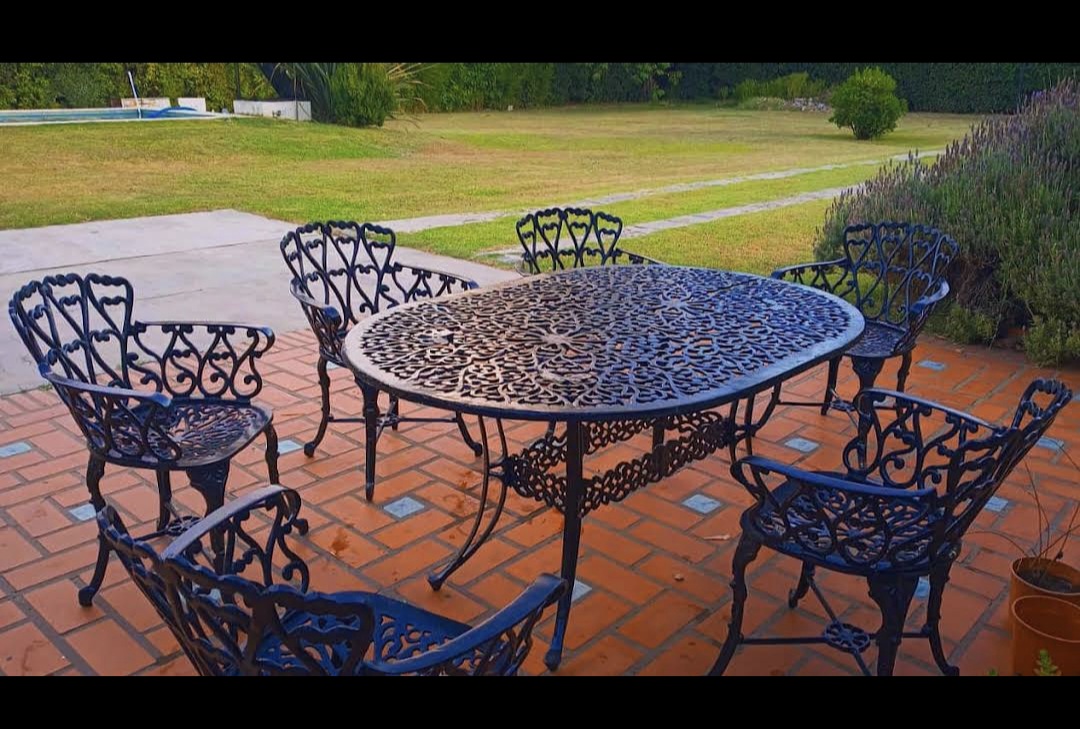 Juego De Jardín En Fundición De Aluminio – Modelo Chato X 6 (Mesa 150 x 100 CM + 6 sillones)