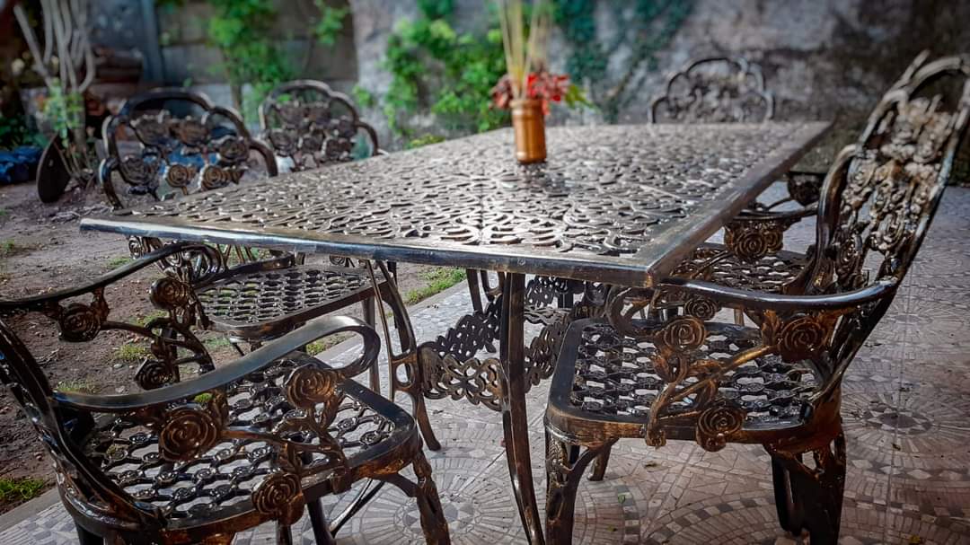 Juego De Jardín En Fundición De Aluminio – Modelo Chato X 6 (Mesa 150 x 100 CM + 6 sillones)