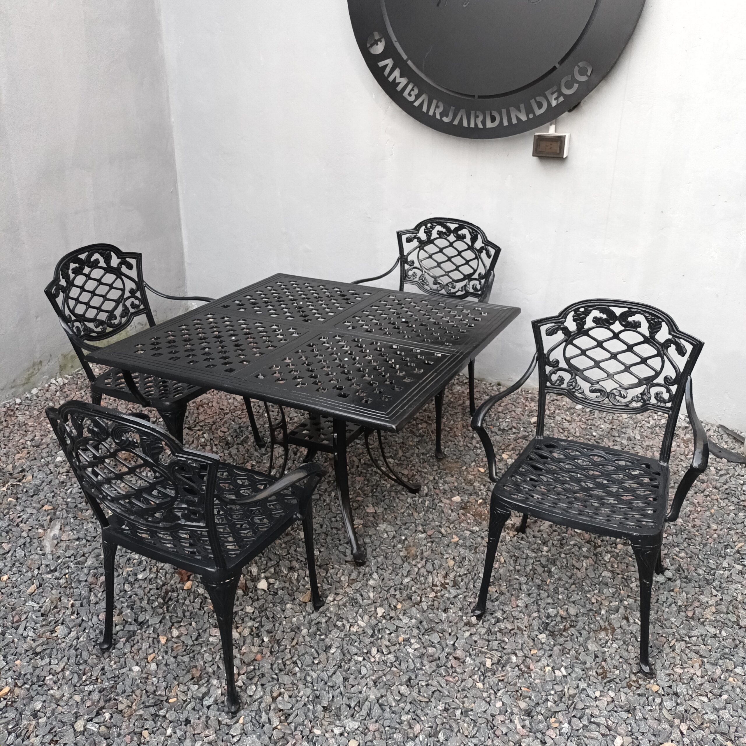 Juego de jardín en Fundición De Aluminio – modelo CHATEAUX x 4 – Mesa 1 mt + 4 sillones