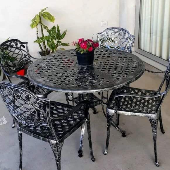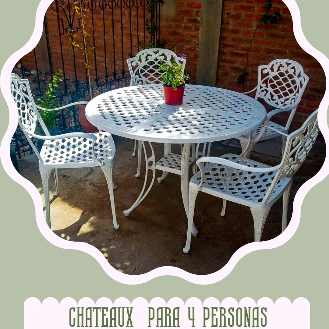 Juego de jardín en Fundición De Aluminio – modelo CHATEAUX x 4 – Mesa 1 mt + 4 sillones