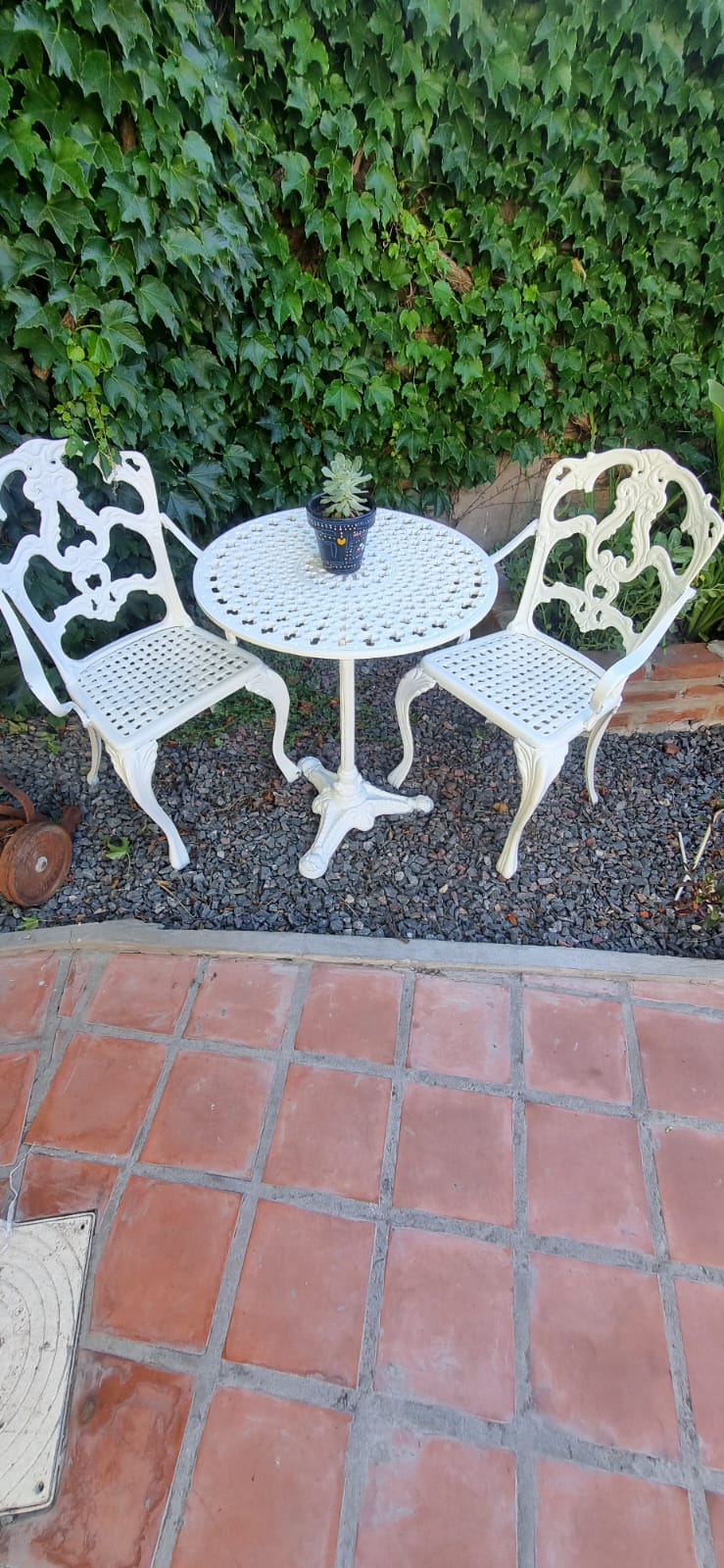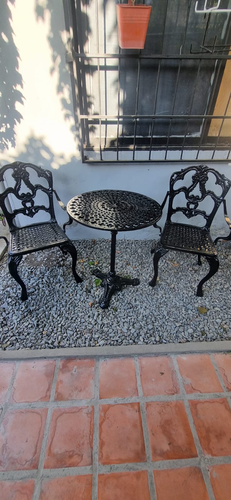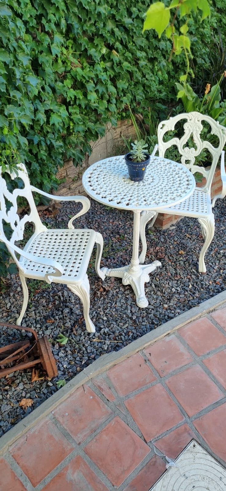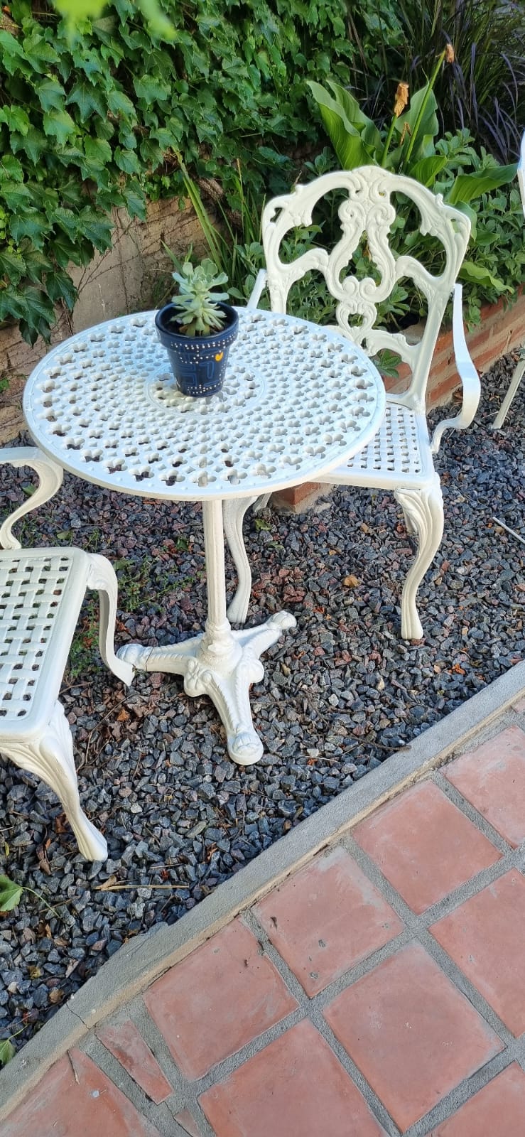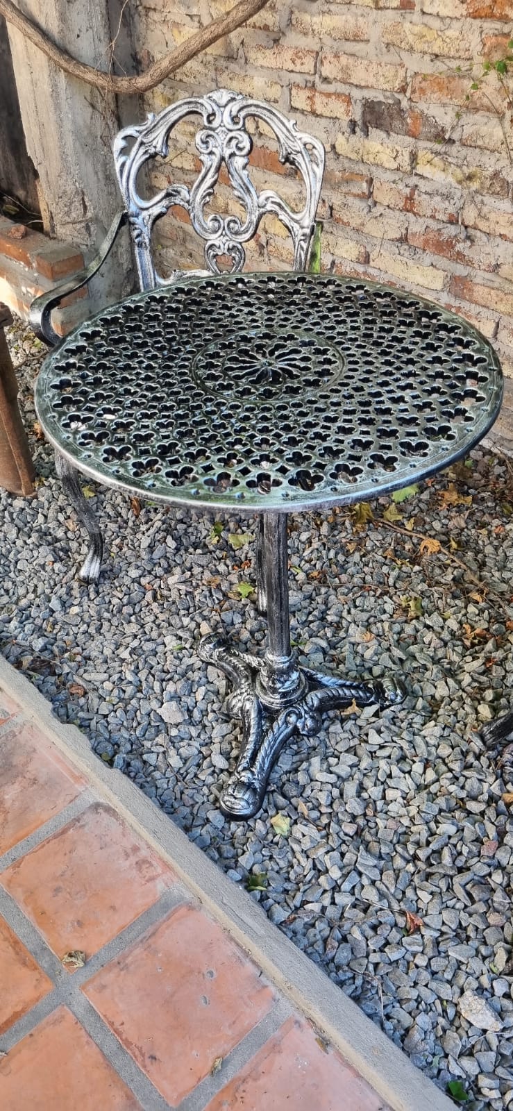MEDIDAS: Mesa 65 cm de diámetro. Sillones : 78 cm alto total, 38 cm diámetro de sentada y 40 cm altura de sentada.